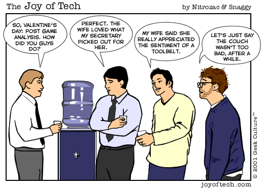 HomeGeek Culture... Geek Love, Geek Files, Mind Numbing Magazine, all kinds of geeky stuff!The Webstore! Get some cool stuff, and support your fave comic creators!e-Cards!The ForumsThe Joy of Tech! ...your quick fix of comic fun!After Y2K ... the webcomic epic!webcam!