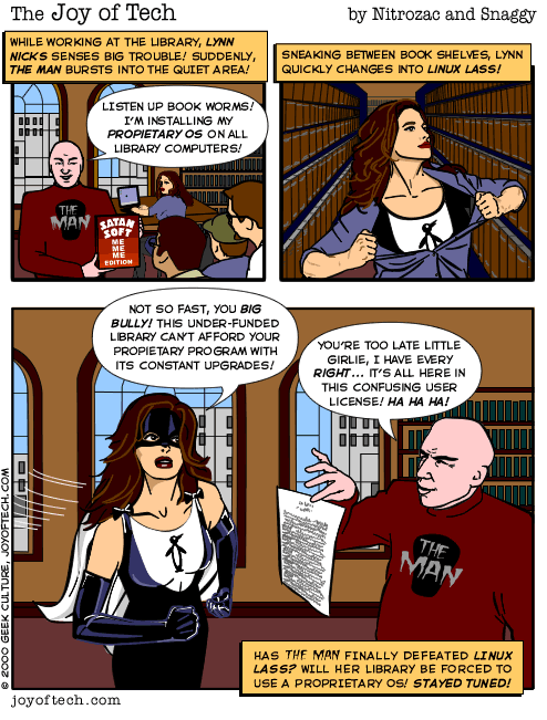 ![]() You can catch the dramatic conclusion to this Linux Lass adventure in... The Joy of Linux! |