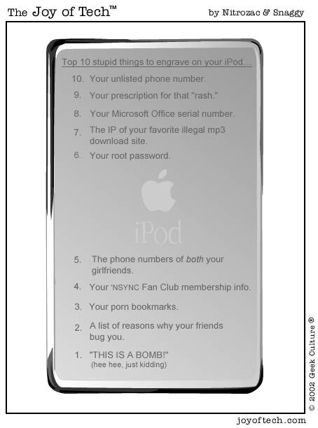 Nitrozac and Snaggy would like to keep you informed of any Joy of Tech and Geek Culture news, with a very occasional email newsletter.