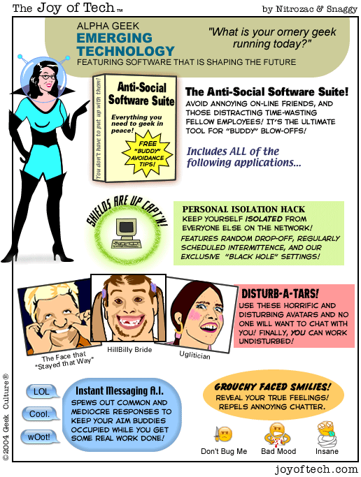 HomeGeek Culture... Geek Love, Geek Files, Mind Numbing Magazine, all kinds of geeky stuff!The Webstore! Get some cool stuff, and support your fave comic creators!e-Cards!The ForumsThe Joy of Tech! ...your quick fix of comic fun!After Y2K!webcam!