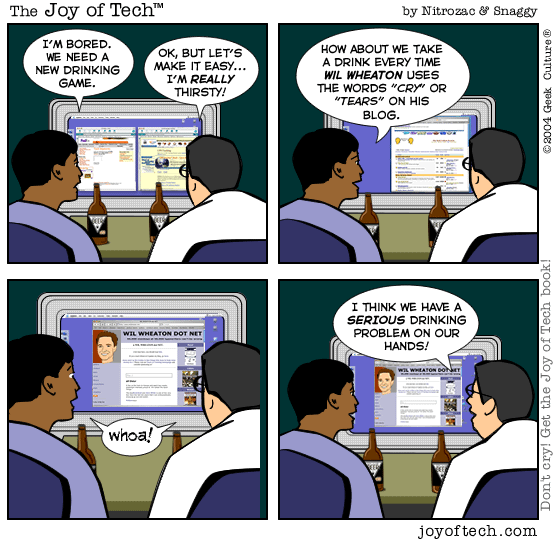 HomeGeek Culture... Geek Love, Geek Files, Mind Numbing Magazine, all kinds of geeky stuff!The Webstore! Get some cool stuff, and support your fave comic creators!e-Cards!The ForumsThe Joy of Tech! ...your quick fix of comic fun!After Y2K!webcam!
