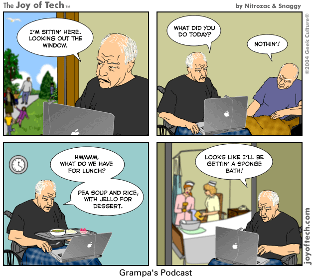 • I must an old fart, I don't know what in the blazes a Podcast is!