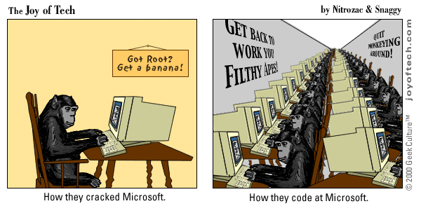 Welcome to the Joy of Tech... illustrated by Nitrozac and written by Nitrozac and Snaggy. It's a little bit simpler in style than our other comic After Y2K, and a little more topical. We hope you enJoy!