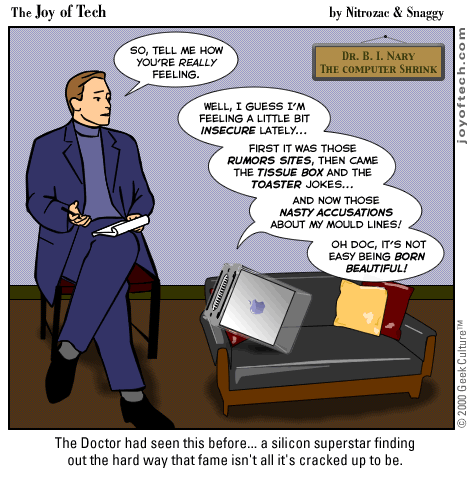 | Welcome to the Joy of Tech... illustrated by Nitrozac and written by Nitrozac and Snaggy. It's a little bit simpler in style than our other comic After Y2K, and a little more topical. We hope you enJoy! |